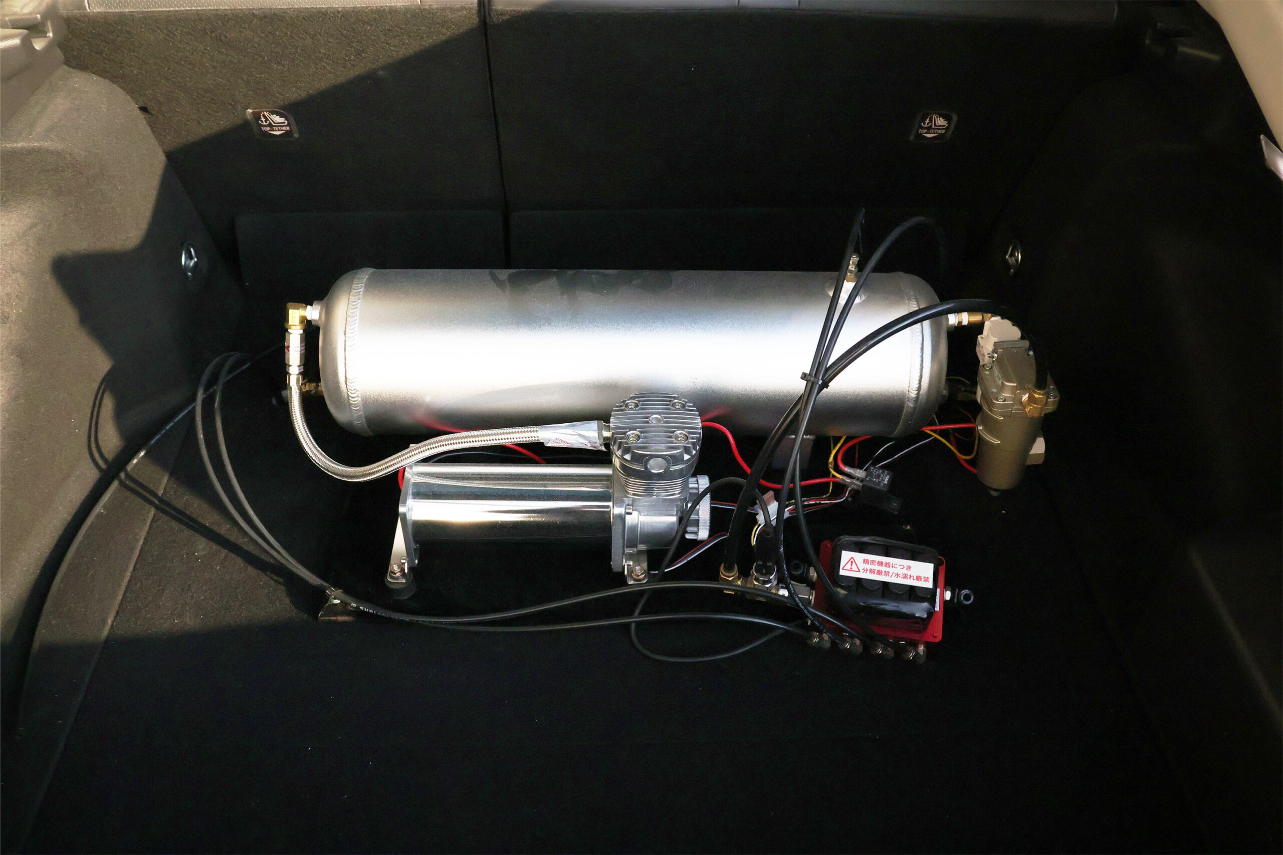エアサスのタンクはトランク内にセッティングしています。