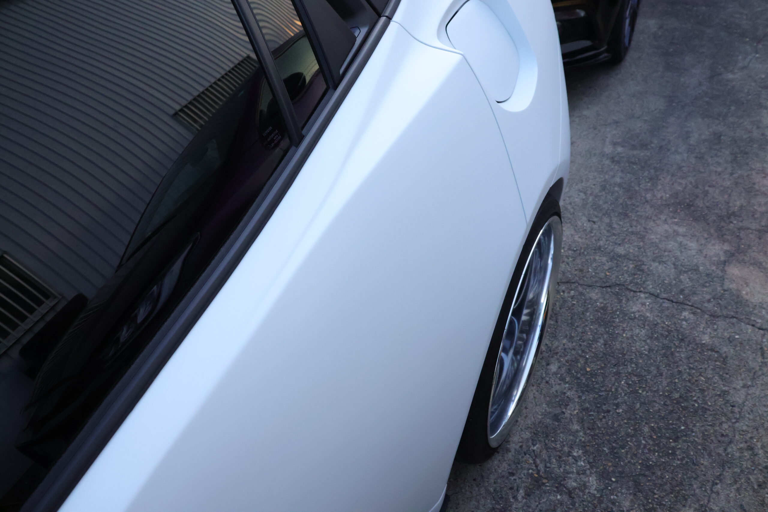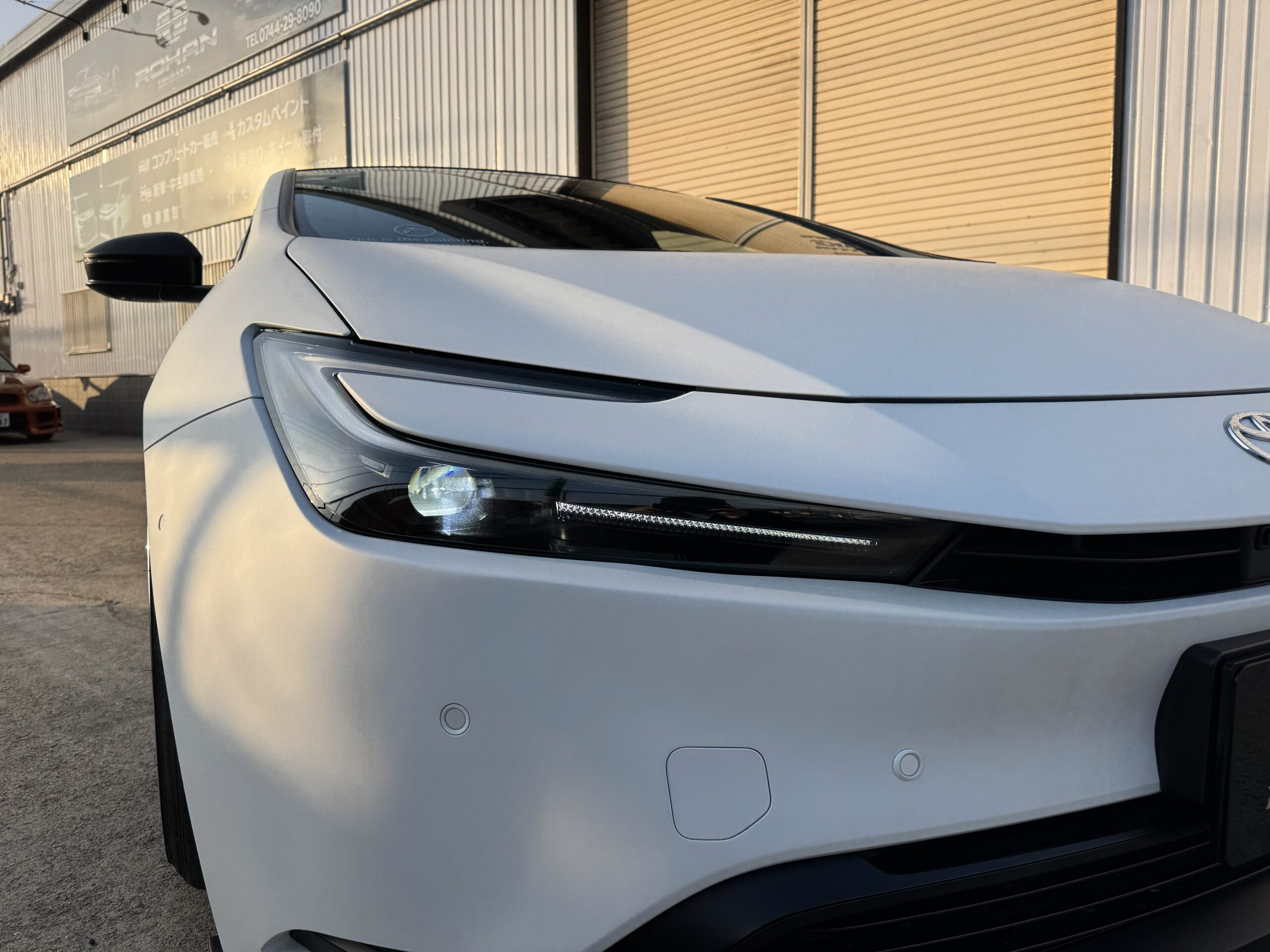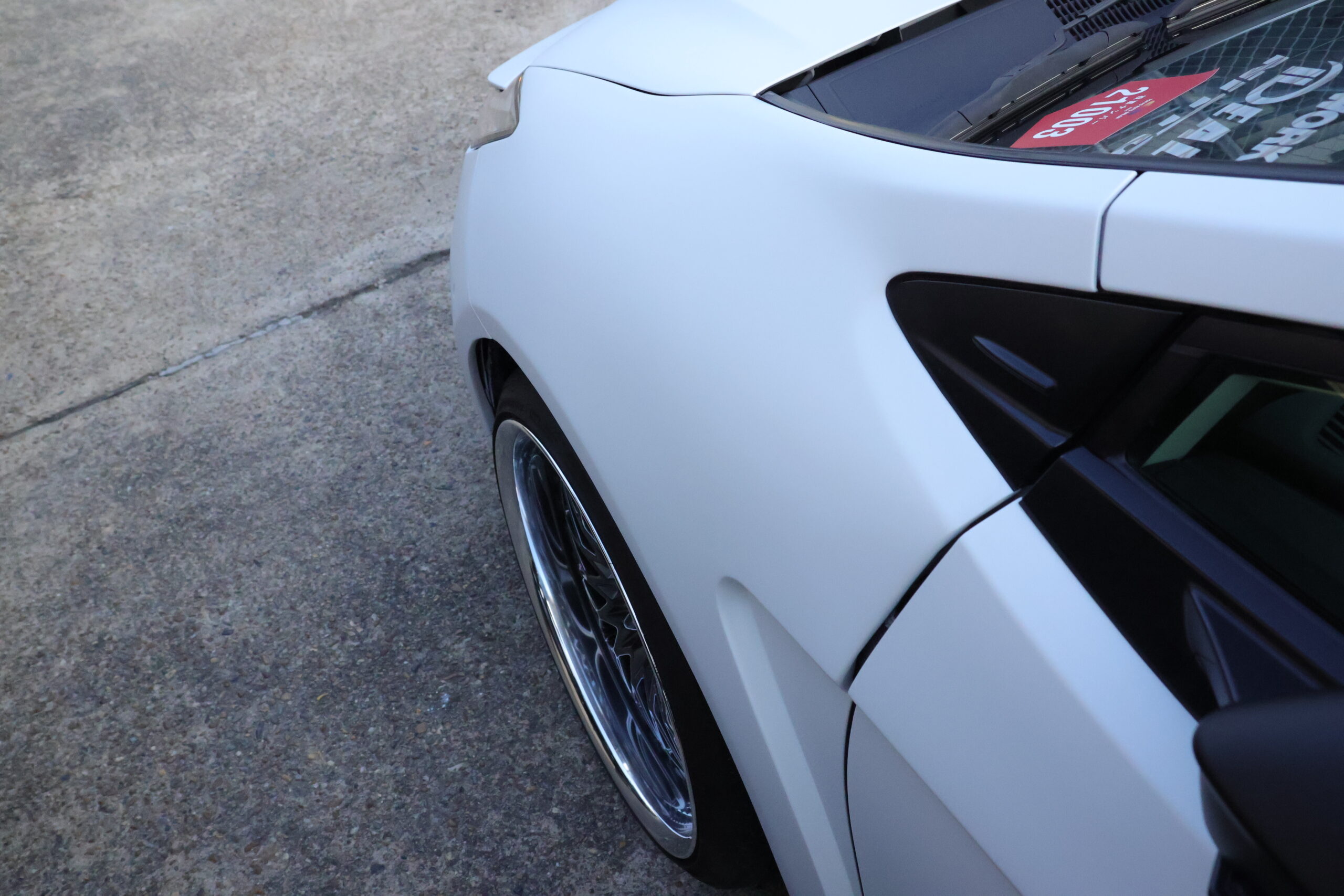 ROHANでオールペイント済み、マットホワイト/エアロはマットブラックで仕上げました。修復機能付きマットクリアを使用しているため、洗車傷が気になりません。お手入れは普段通りでOK!