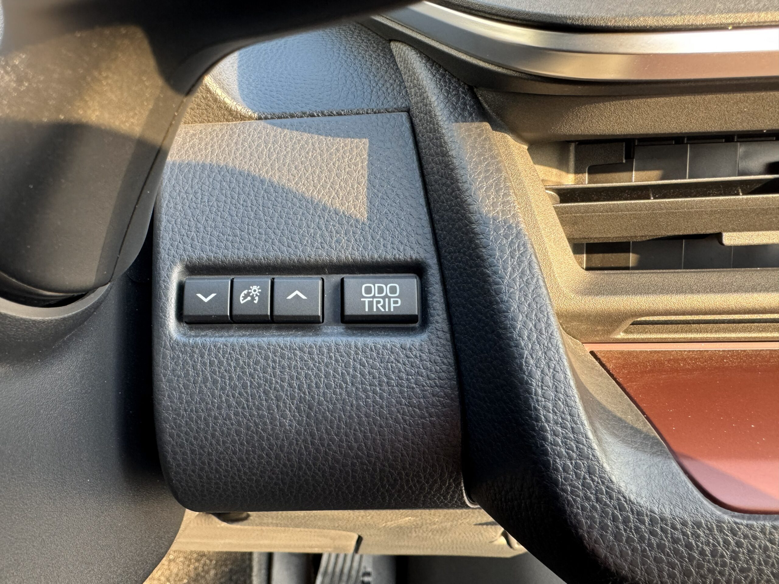 スピードメーターの明るさ調整や、表示切替がこちらのボタンから可能となります。